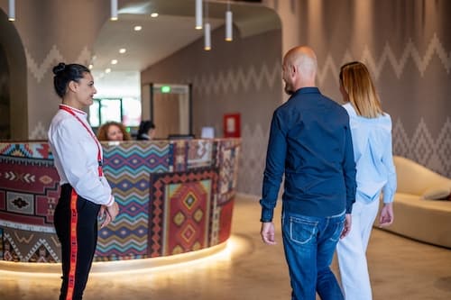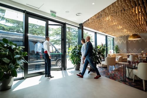 Personal Assistant meeting at the entrance